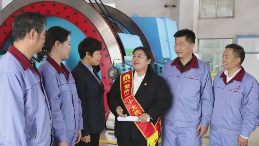 在淮北矿业集团桃园煤矿,返回工作岗位的二十大代表、保运区主提升司机刘婉春,第一时间通过班前会、专题报告会等形式,将党的二十大精神传达给工友,分享自己参会的感悟。