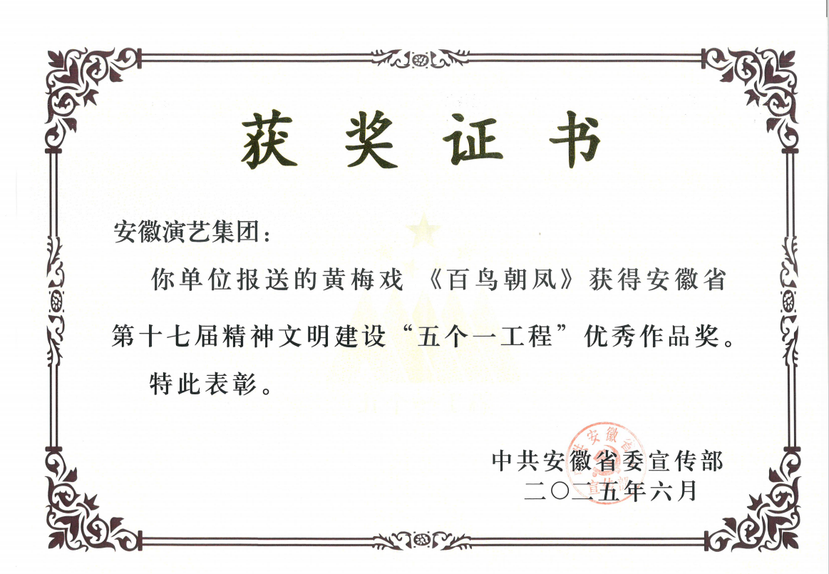 近日,省委宣传部印发表彰决定,对安徽省第十七届精神文明建设“五个一工程”组织工作先进单位和优秀作品进行表彰,集团荣获“组织工作奖”。由集团联合申报的话剧《炉火照天地》荣获“特别奖”,组织申报的民族歌剧《风雪大别山》、黄梅戏《百鸟朝凤》荣获“优秀作品奖”。