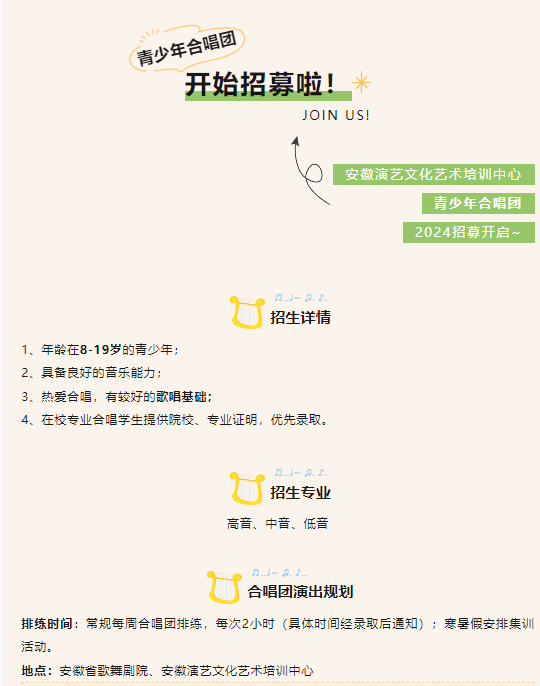 青春如歌 梦想启航 | 安徽演艺文化艺术培训中心青少年合唱团2024年开始招募啦!